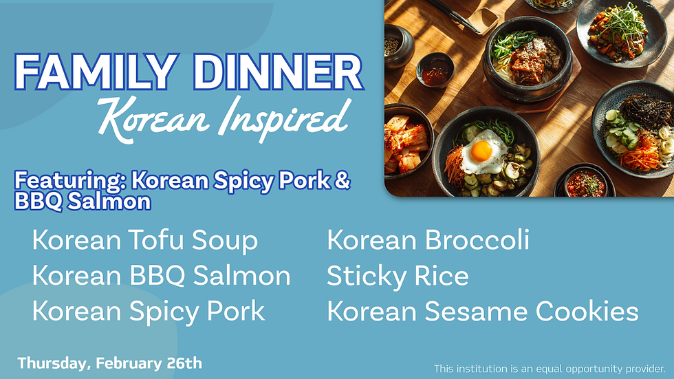 Next Thursday, join us for a meal that focuses on sharing and gathering. We will be serving Korean dishes full of deep and exciting flavors for you to enjoy.